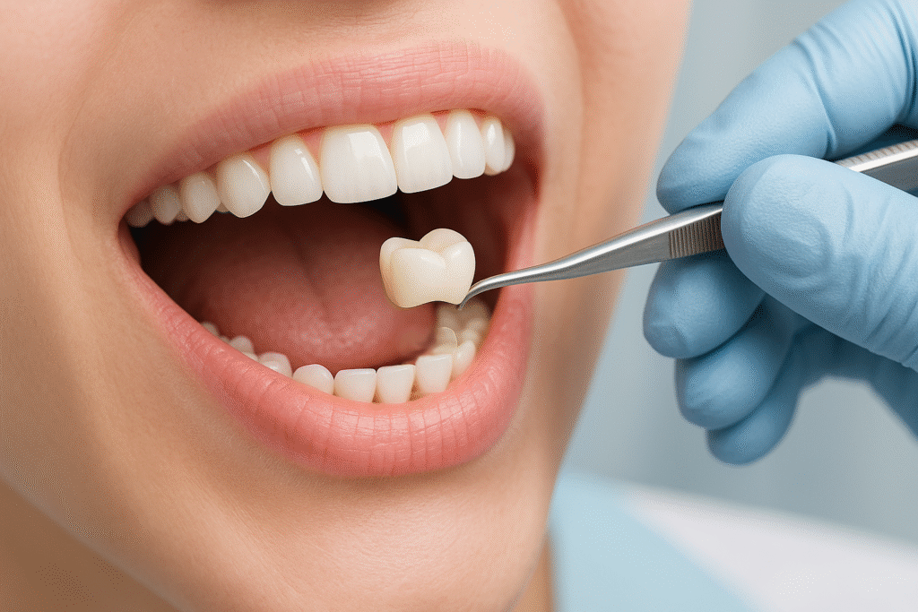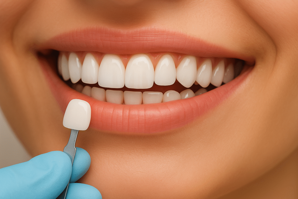 Lâminas ultrafinas em porcelana ou resina que ajustam cor, formato e pequenas imperfeições, revelando um sorriso uniforme em poucas sessões.
